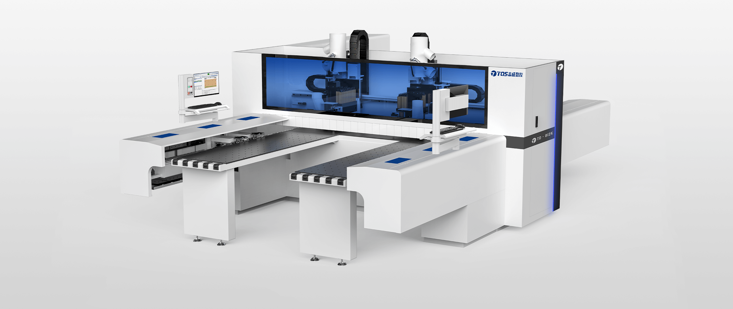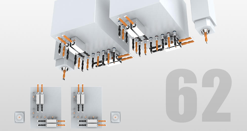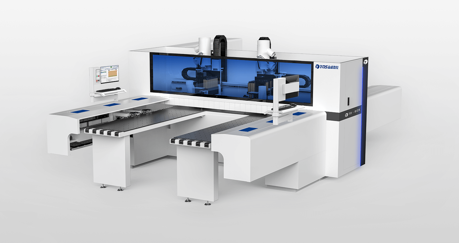 TD-812K采用双工位结构,不同尺寸的板件可在两个加工单元中同步进行六面钻孔、上下拉槽铣型工作,左右加工单元独立或合并工作为您提供灵活的加工方式。满足各种差异化批量加工需求,效率翻倍。