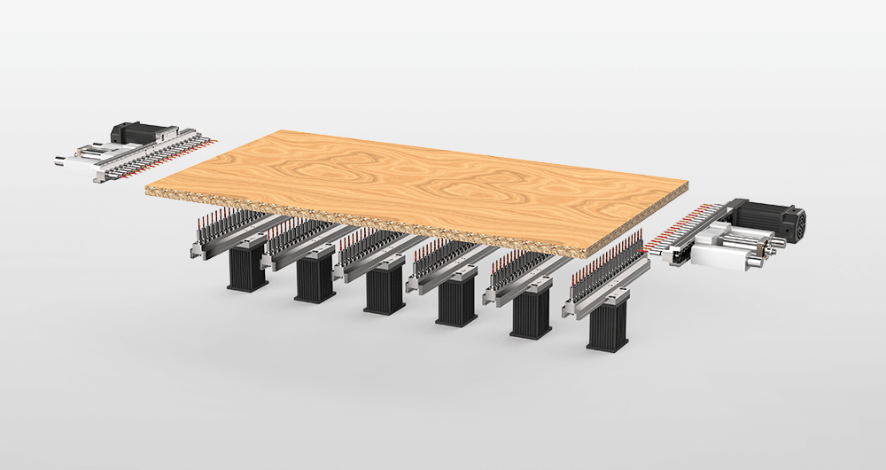 适用于板式家具生产过程中一次工序完成三面钻孔作业,左右水平钻排和下垂直排钻自由组合工作,最多每分钟可加工13-16件板,采用皮带传输送料方式,配备滚珠丝杆传动定位装置确保定位精准,垂直钻排配备数字显示器,逻辑控制编程PLC控制系统。