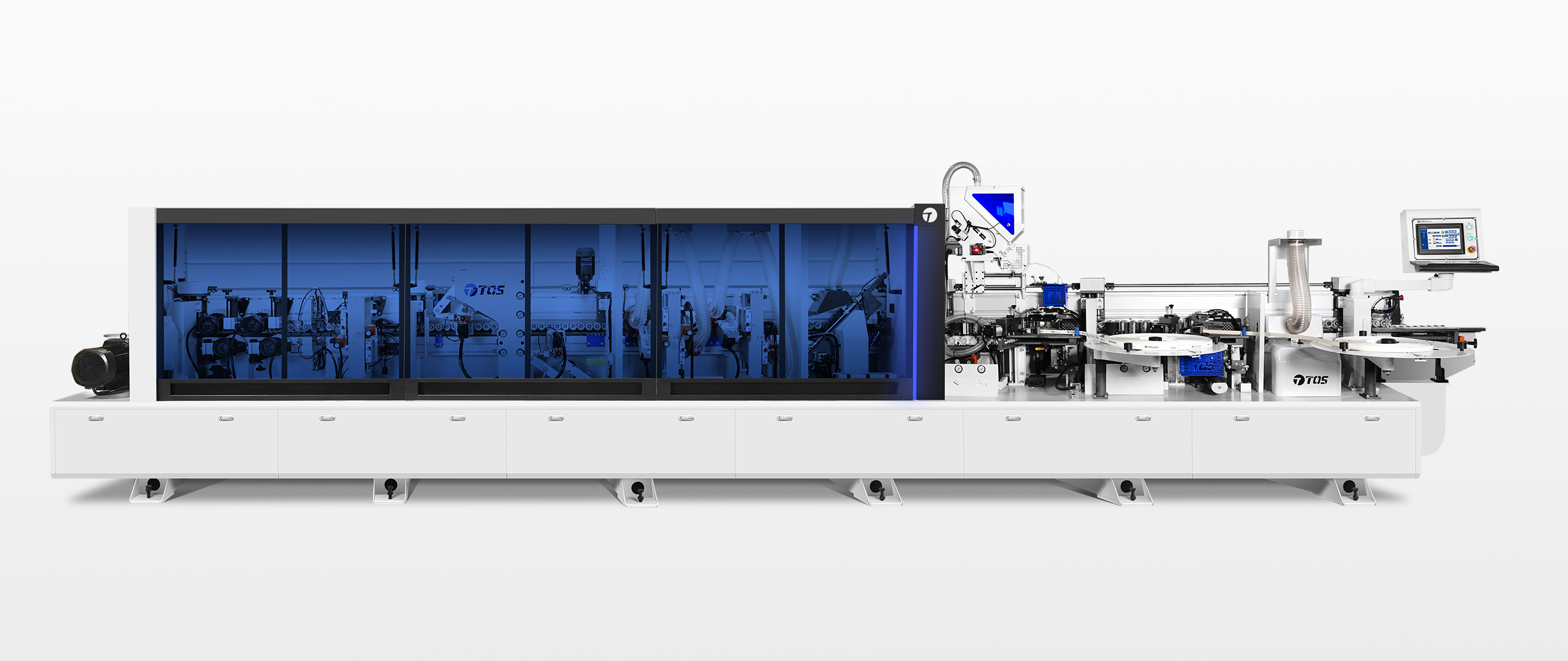 TE-568JGK全自动封边机 - EVA下置胶锅搭配上置快速溶胶系统,PUR/EVA自由切换,品质效率两不误,不止性能,更专注于封边美的效果!